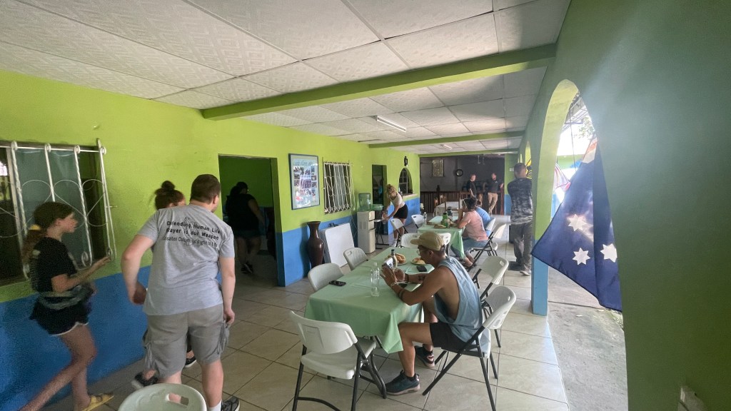 When we arrived at the Mission house and the gate opened up, it immediately felt like a resort/retreat home. The bright green and blue hues of the house mixed with the greens of the trees and tropical feel of the jackfruit had a serenity about it. Those feelings were amplified meeting the CEDEINFA team for the first time. Their spirit was immense and they welcomed us with food, hugs and prayer.