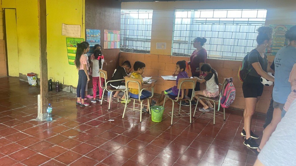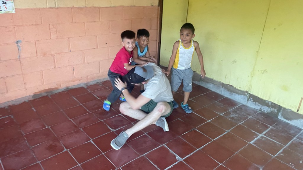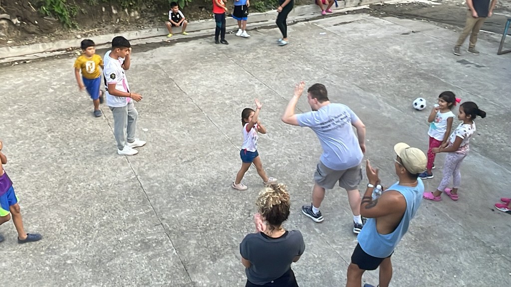 Arriving at the community center — a single room and concrete courtyard — we met the children. They were in school, which is run by CEDEINFA as they can’t afford public education, and divided into three age groups inside the building. After interacting with them and doing our best to communicate through basic Spanish, we showed them the soccer ball we brought. Playing soccer on concrete with small, metal goal posts felt so restricted compared to our big fields and parks back home, but it didn’t change the spirit of the game. The children were thrilled to have new playmates, and the ones that sat out found new companions in myself and a few others that chased them until we were outnumbered and lost control, with children hanging on every piece of our limbs. Their joy stole my heart immediately; these children are why I came to serve. What a beautiful introduction to the community on our first night.