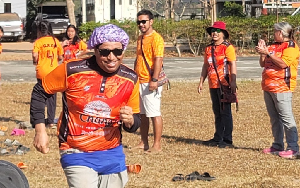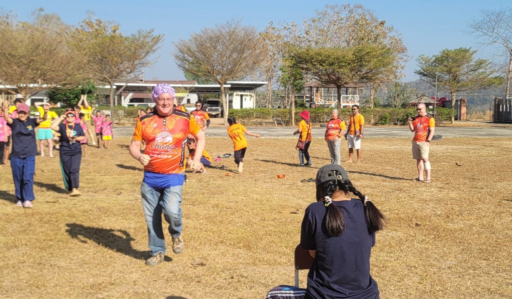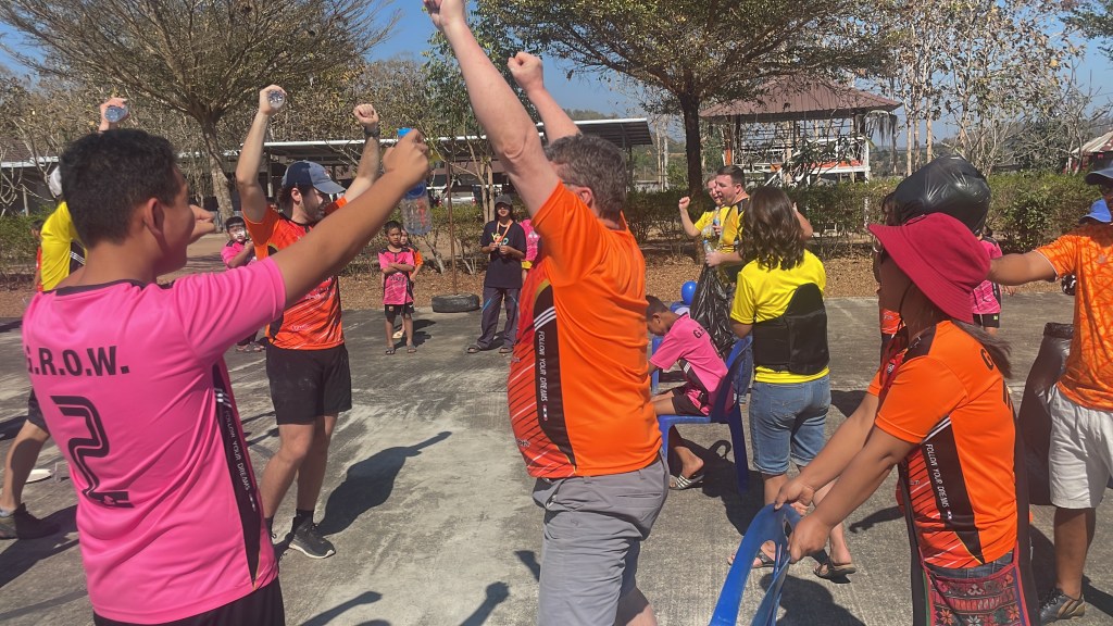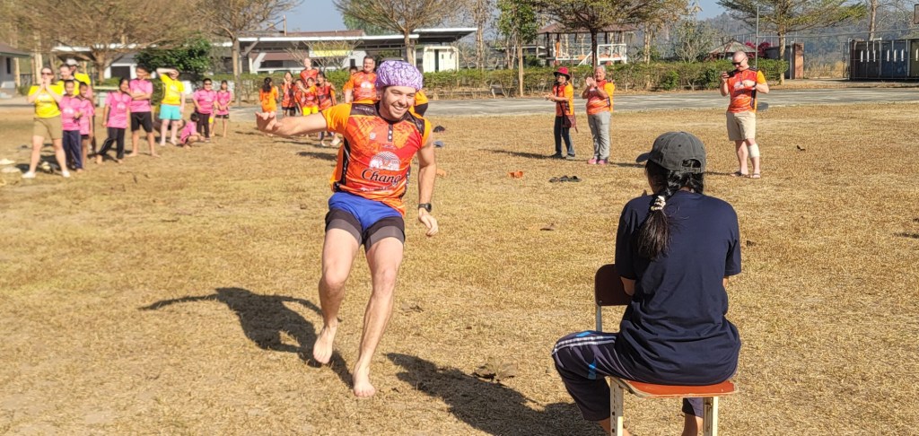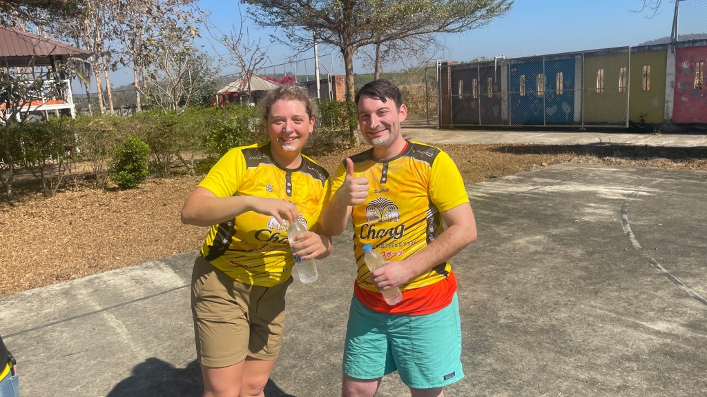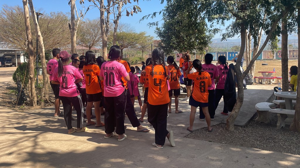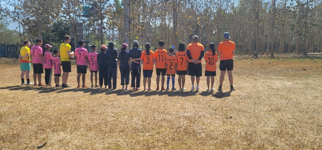 Each of our teammates were given a GROW jersey, something we had been admiring all week and asked to purchase from the mission. We were split in two teams – orange and yellow/pink – and each were given a jersey of that shade. Shortly, we learned that Thai sizes and American sizes differ greatly. Even though they sized up two sizes from the American t-shirt sizes we had given them a few days earlier, they were incredibly tight – skintight – but our team gleefully wore them anyway to participate.