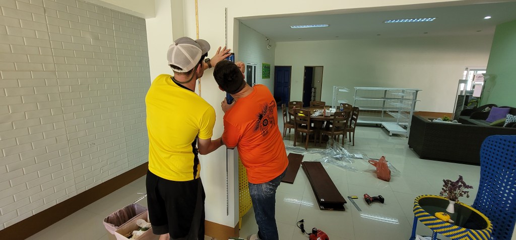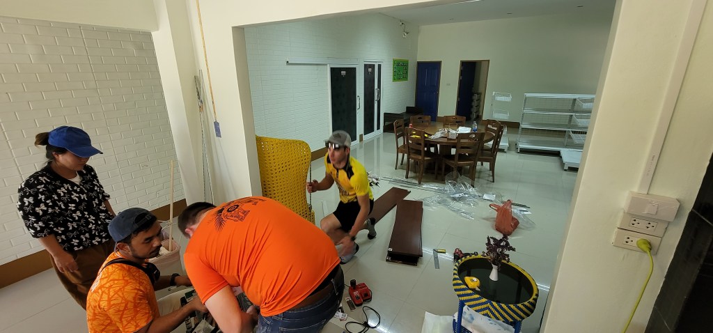Some of these projects proved more difficult than others. For example, when a few of the guys went with Faa to buy lumber to build shelves in the kitchen, they discovered there no lumber in sight at the hardware store. They drove 2-3 hours each way to find basic shelving to install.