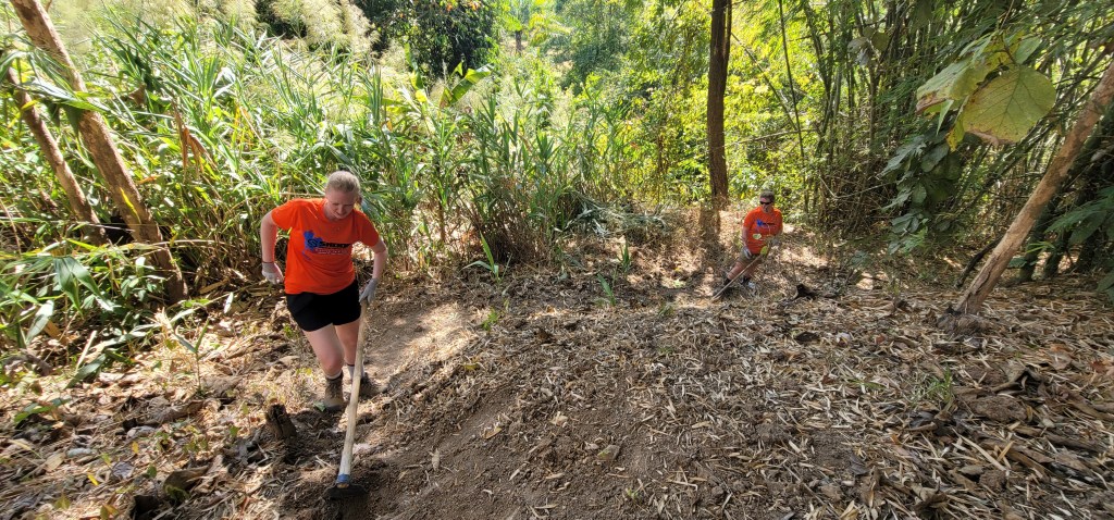 Swinging the hoe over and over again was hard work, and I was dripping sweat from head to toe. About 30 minutes into notching steps and questioning if it would actually make a difference or just wash out when the rain came, I saw a group of kids approach at the top of the hill to bring us water. They jogged down the new steps we had created, full of smiles, and then continued down the path to meet the others. Their smiles and ease of navigating down the hill made the back-breaking work worth it. They could not wait to get to the river to play like true kids. The small sacrifice of hard work would allow them to continue their healing and give them a chance to create childhood memories. I carried on.